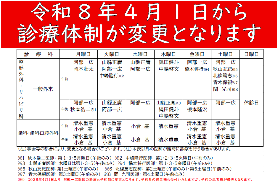 腰・手・膝・股関節・歯科口腔外科の専門医による診療